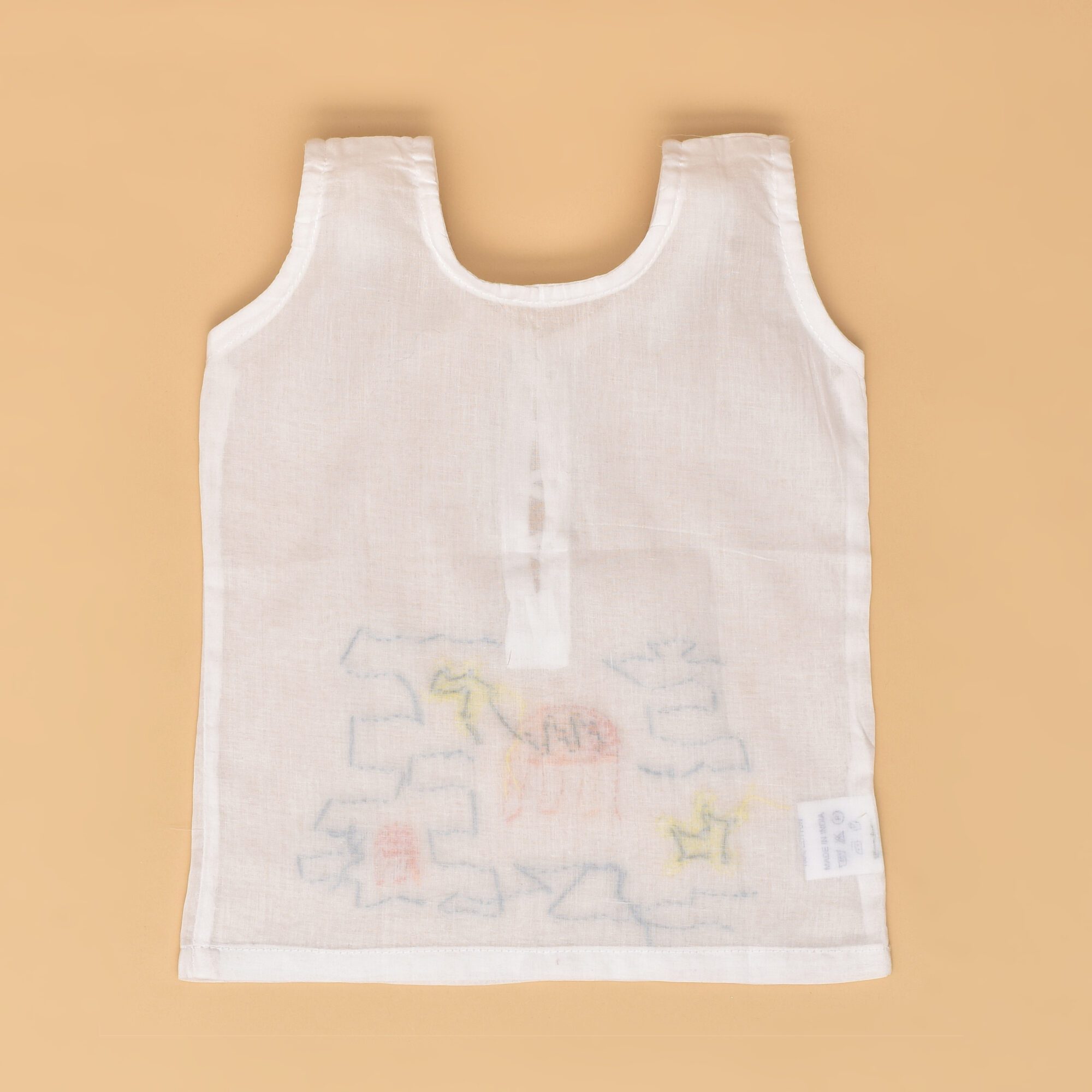 White Mulmul Semi Front Open Jabla for Babies with Sea Creatures Design Hand Embroidery