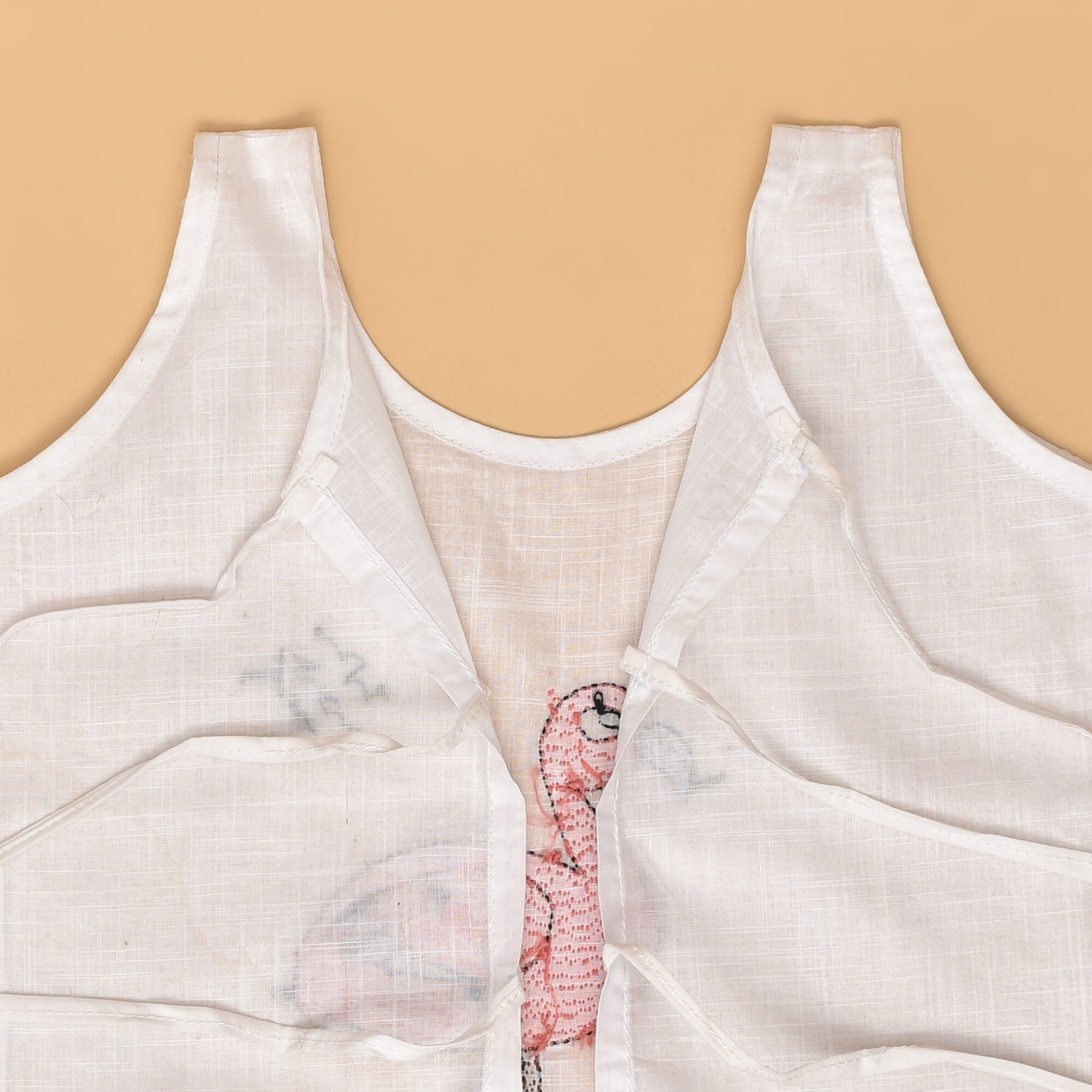 White Cotton Back Open Jabla for Babies with Ant Design Hand Embroidery