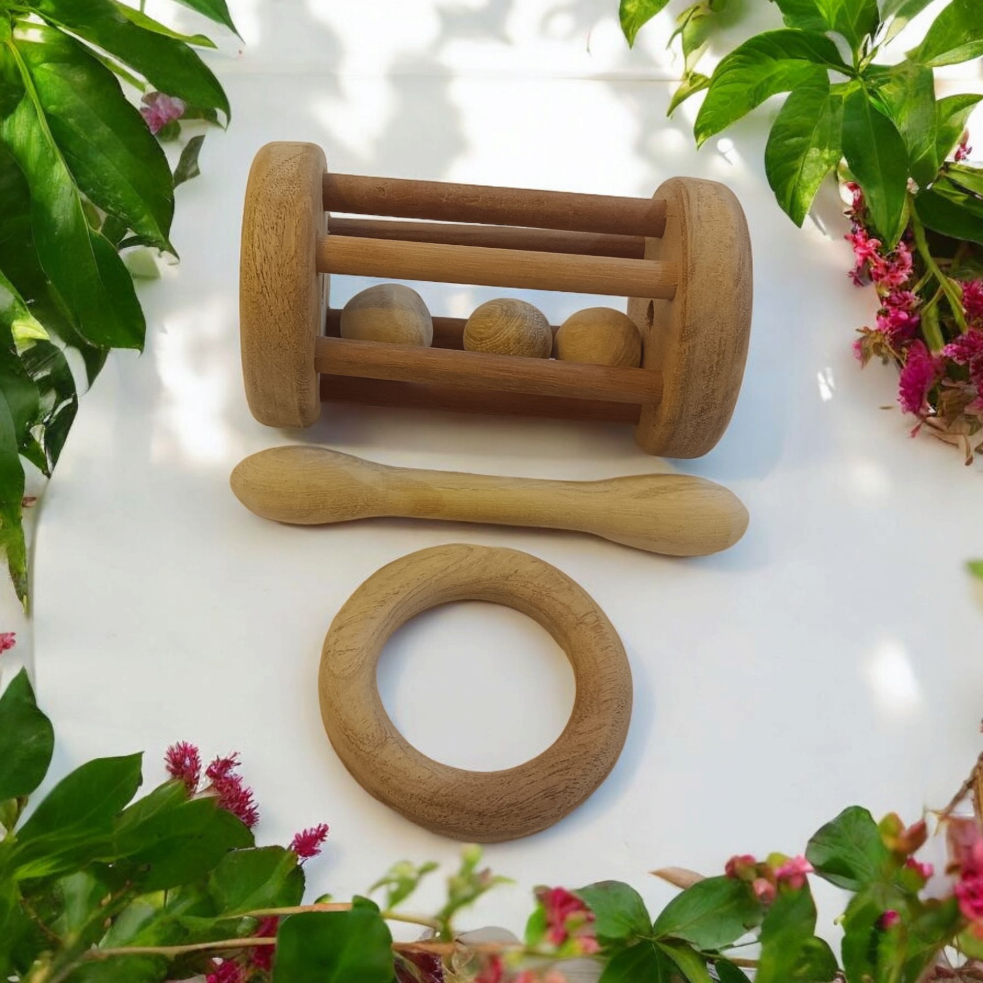 Shop NowCombo of Neem Wooden Tumbler Rattle & Teethers of Shapes – Dumbbell & Ring