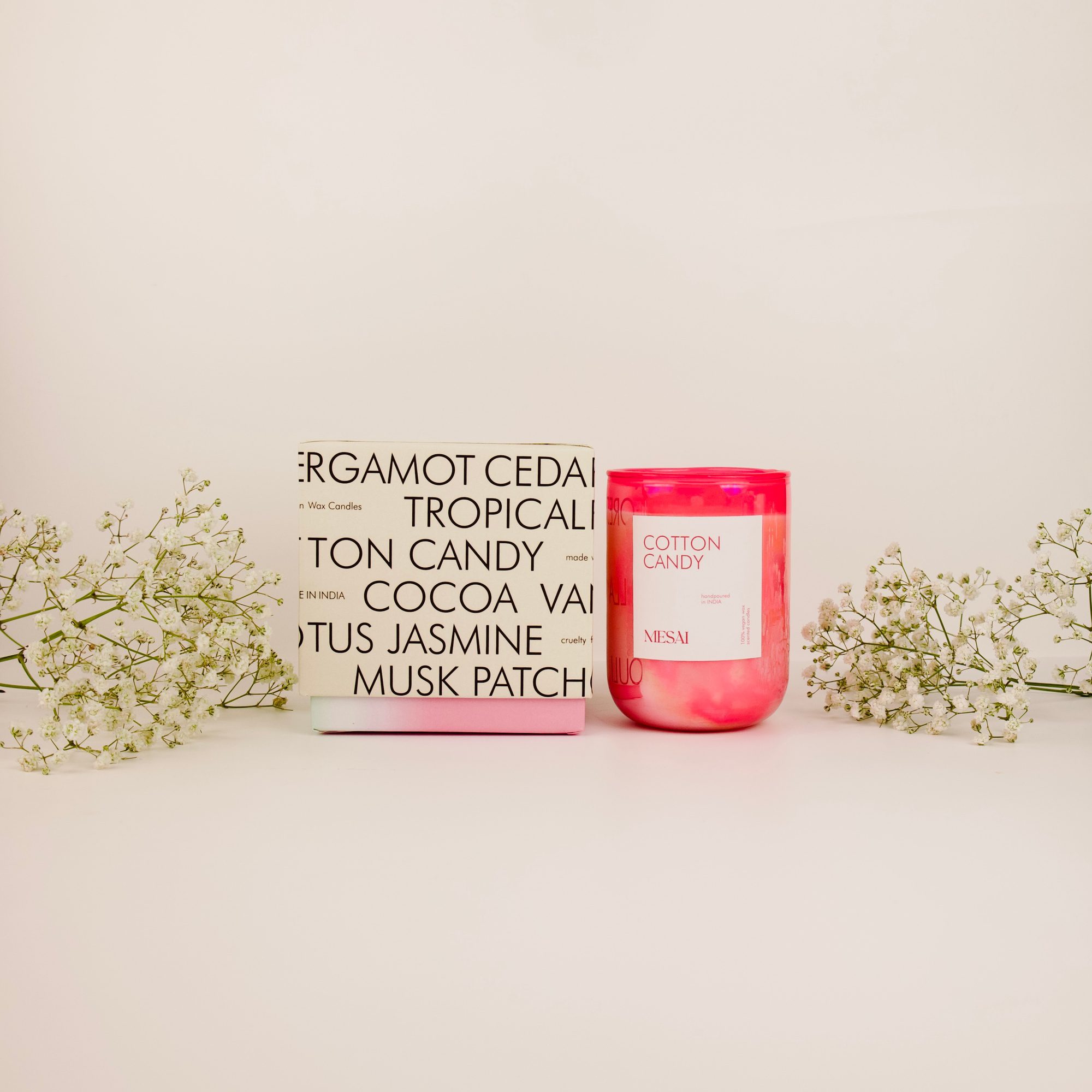 Transport yourself to a whimsical carnival with every flicker of this enchanting soy wax candle. Nestled in a charming pink container, this sweet treat for your home brings the irresistible aroma of cotton candy to life.