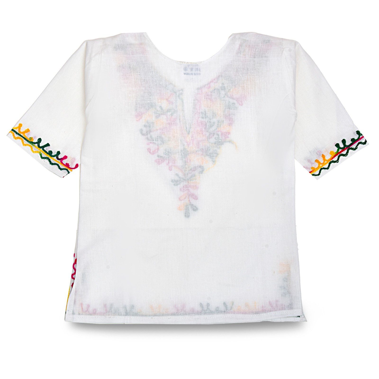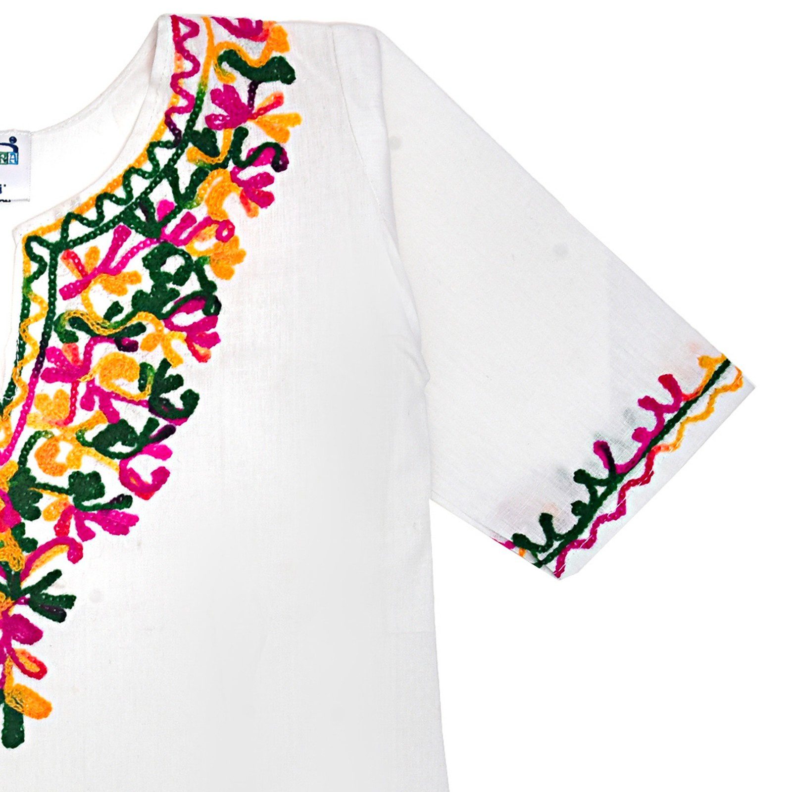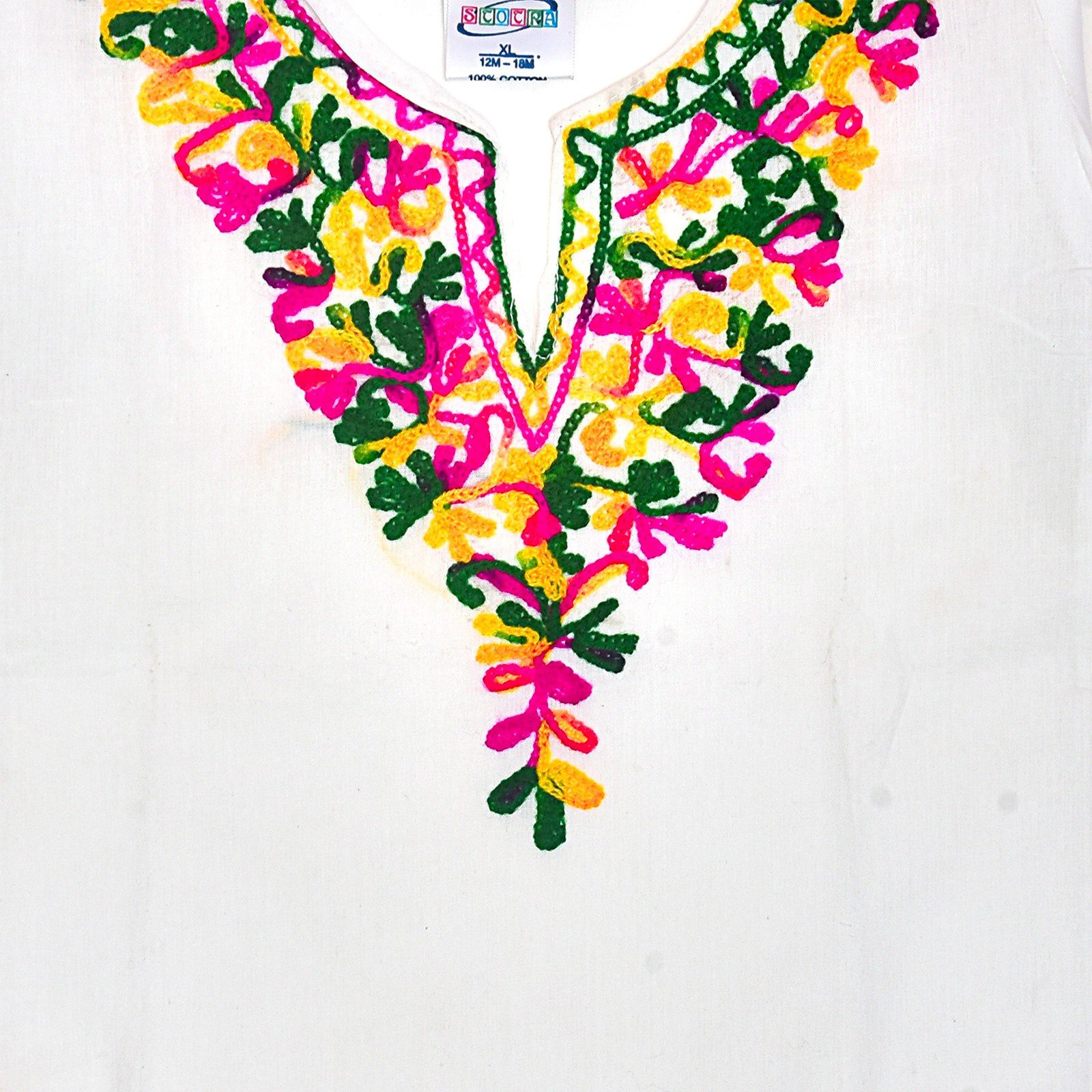 Shop NowGirls White Cotton Kurta Pyjama with Multicolour Kashmiri Ari Work