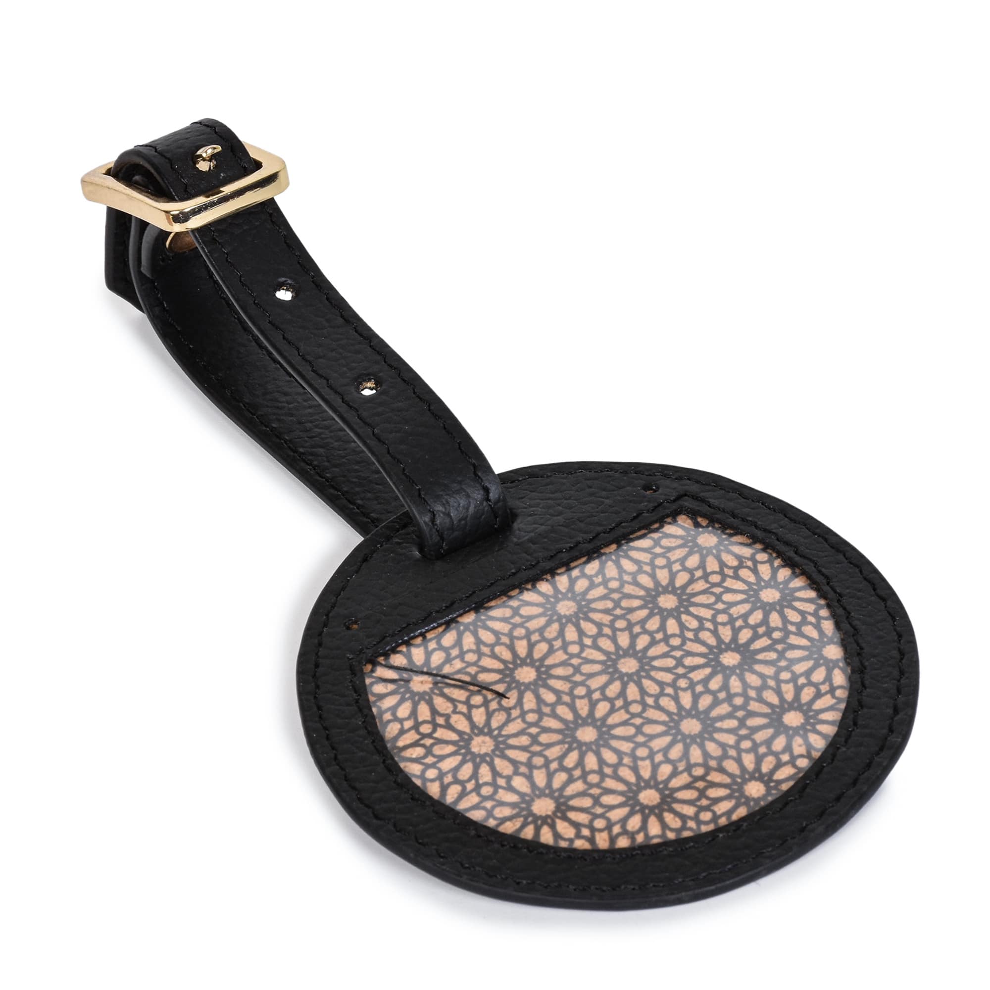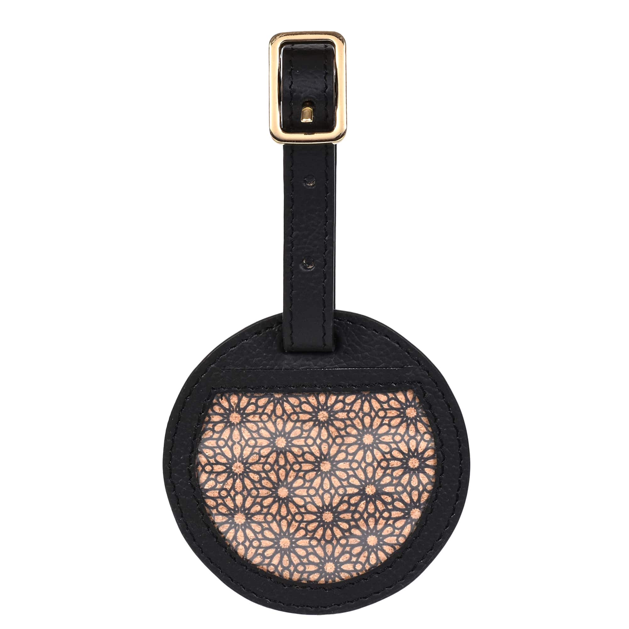 Shop NowGreen Hermitage Travel Tag | Vegan Leather & Cork, Circular Cutout (Black)