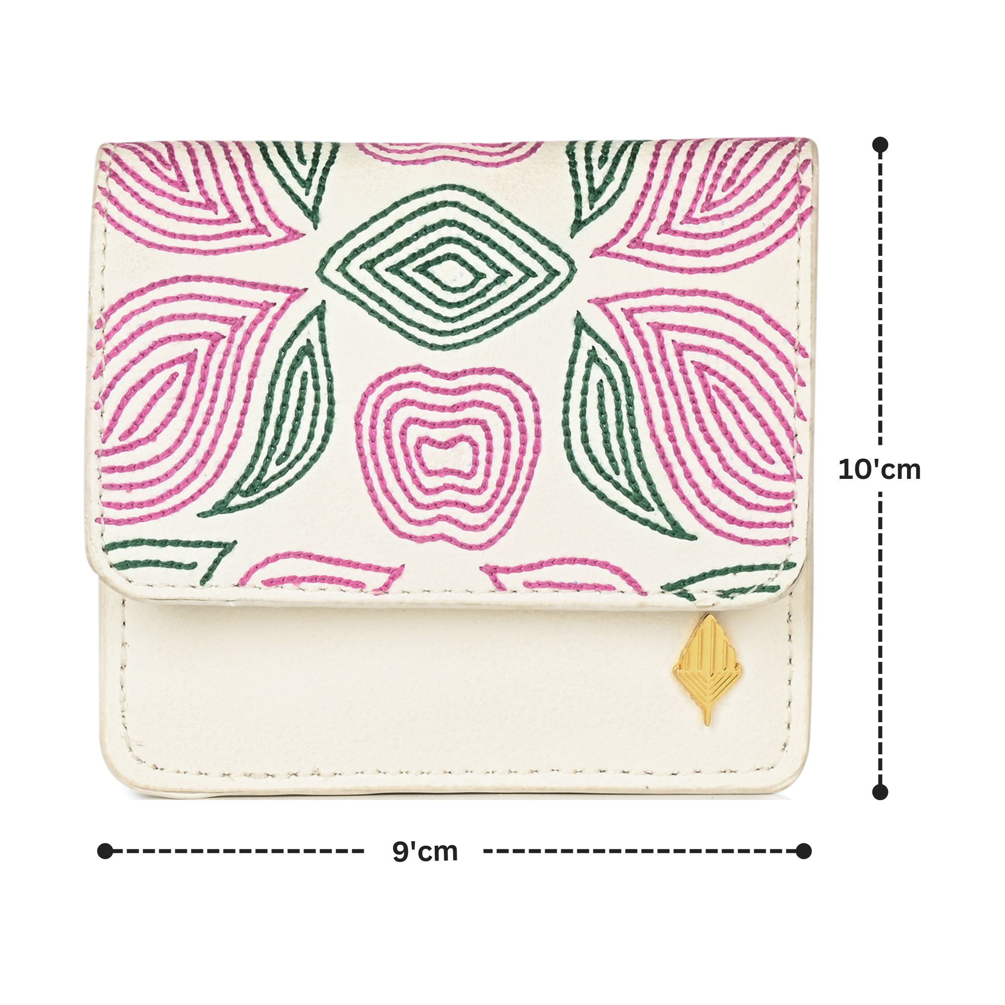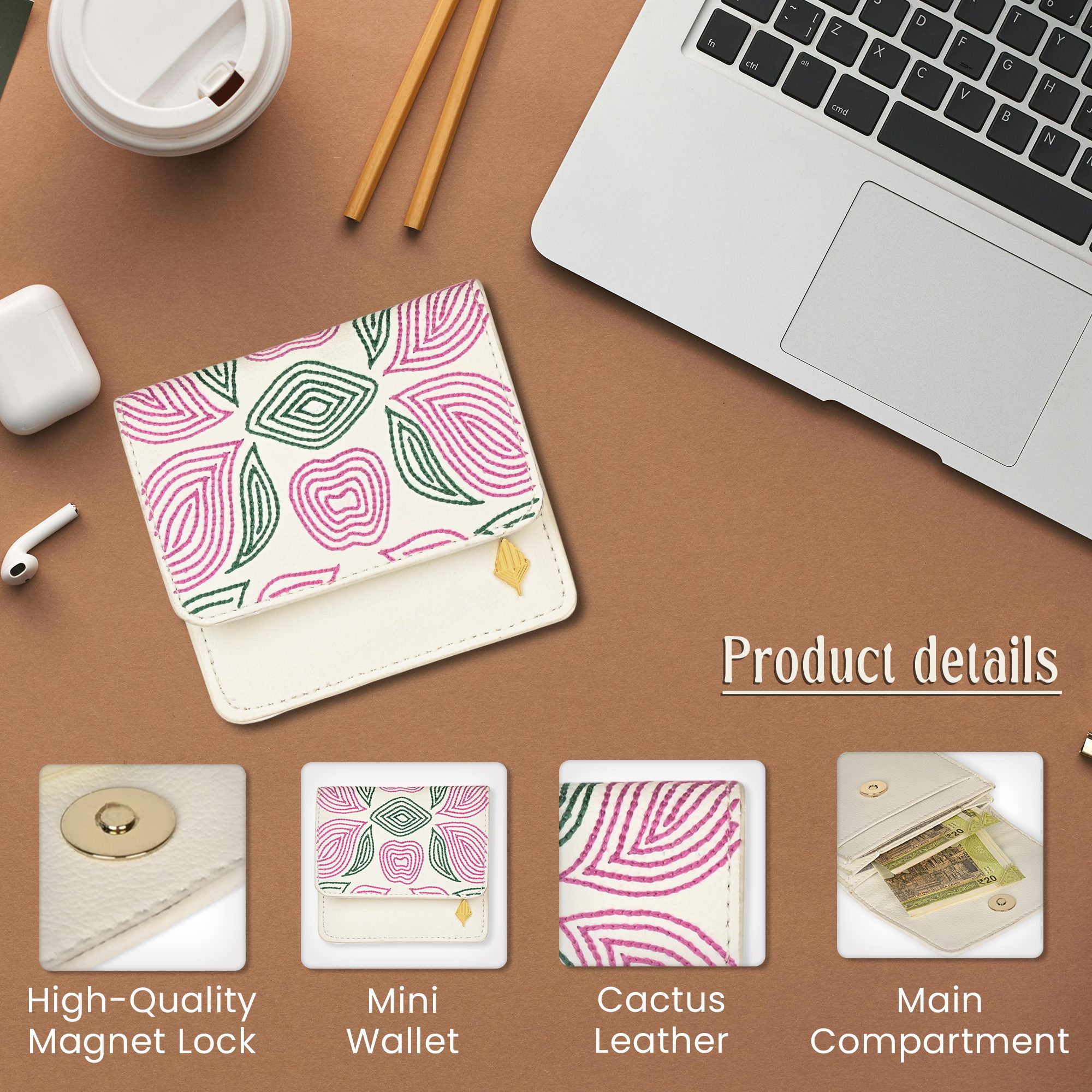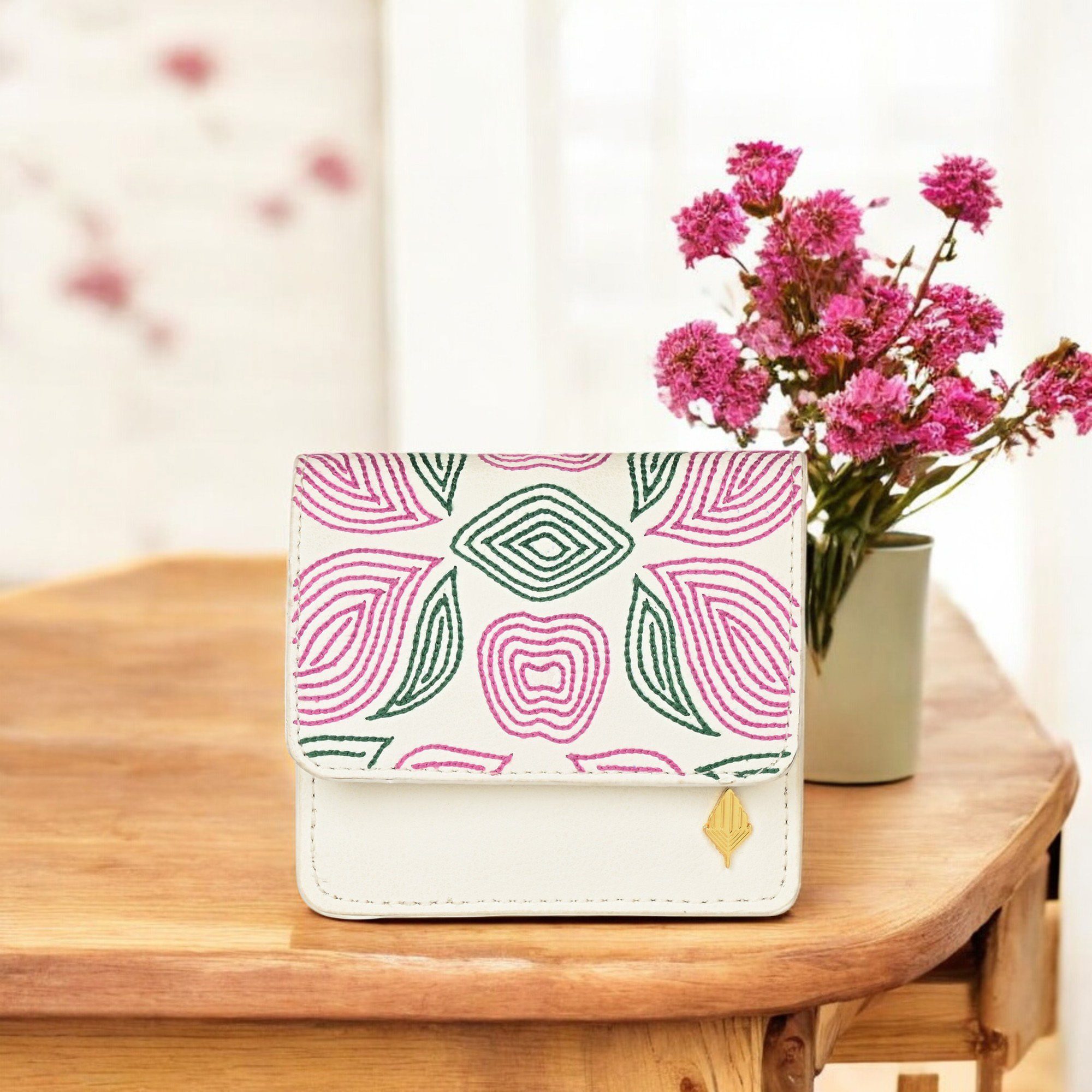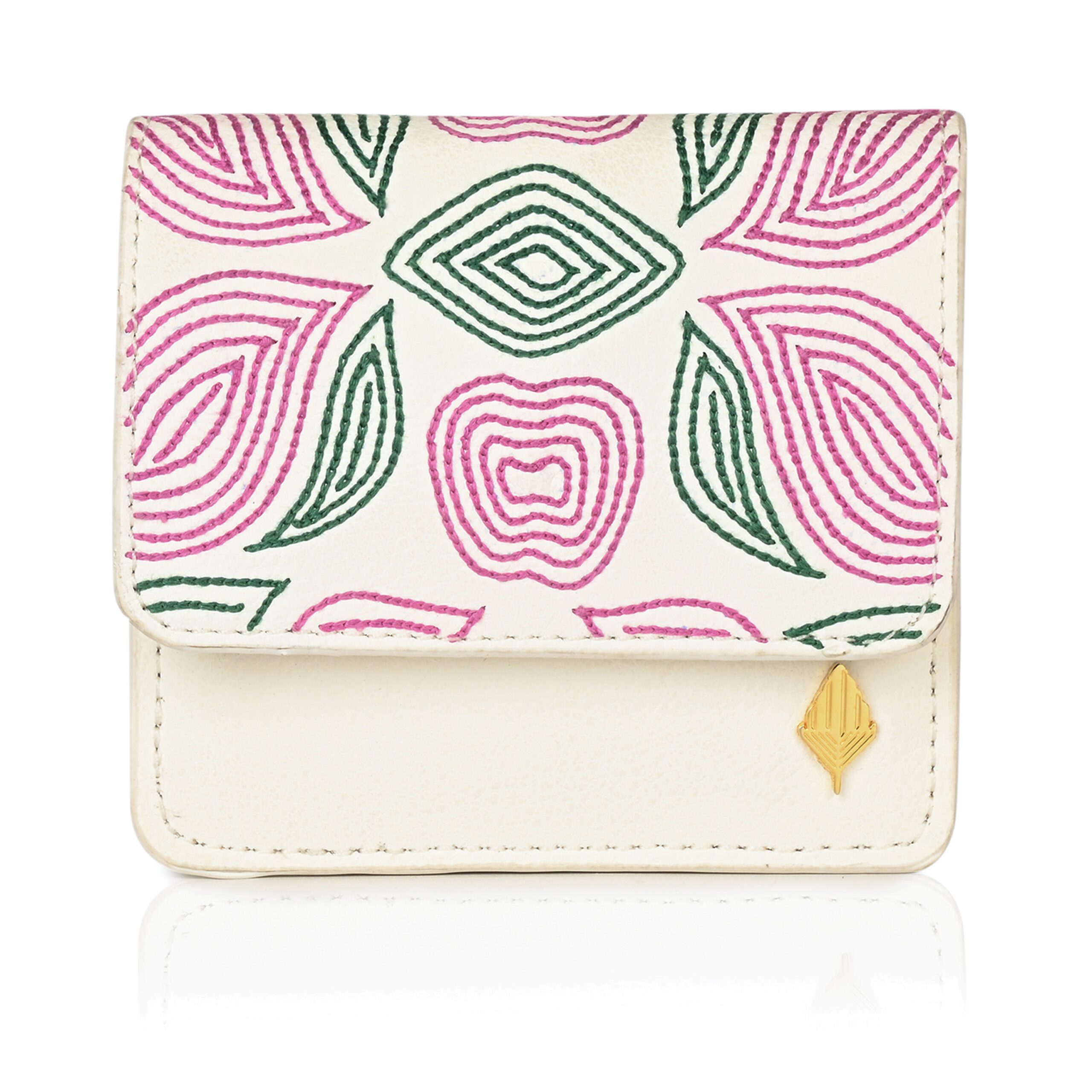 Combine simplistic hand embroidery, plant-based leather and a super spacious mini-wallet that keeps all your cards, cash, change and a little extra. It expands as you add more stuff. The Lana Cardholder can be customized to be a mini sling wallet. It is just truly special.