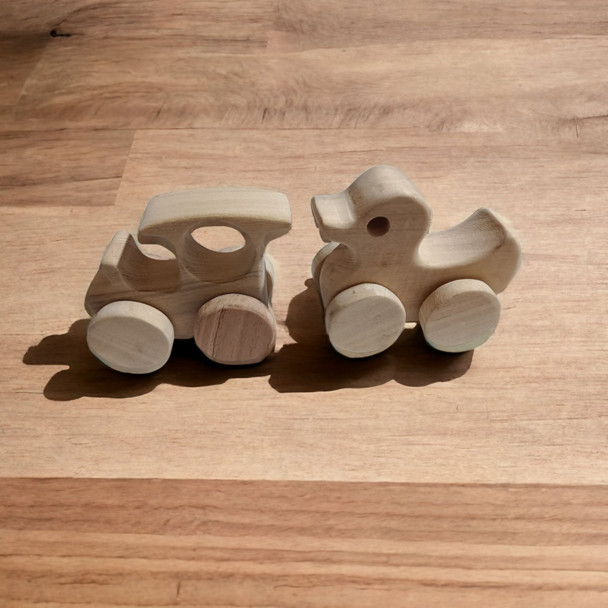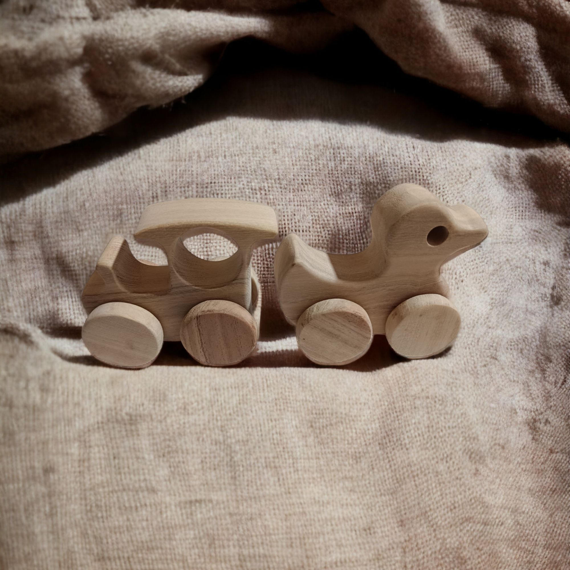 Pack of 2 Beautiful Neem Wooden Wheel Toys – Train & Duck Shapes