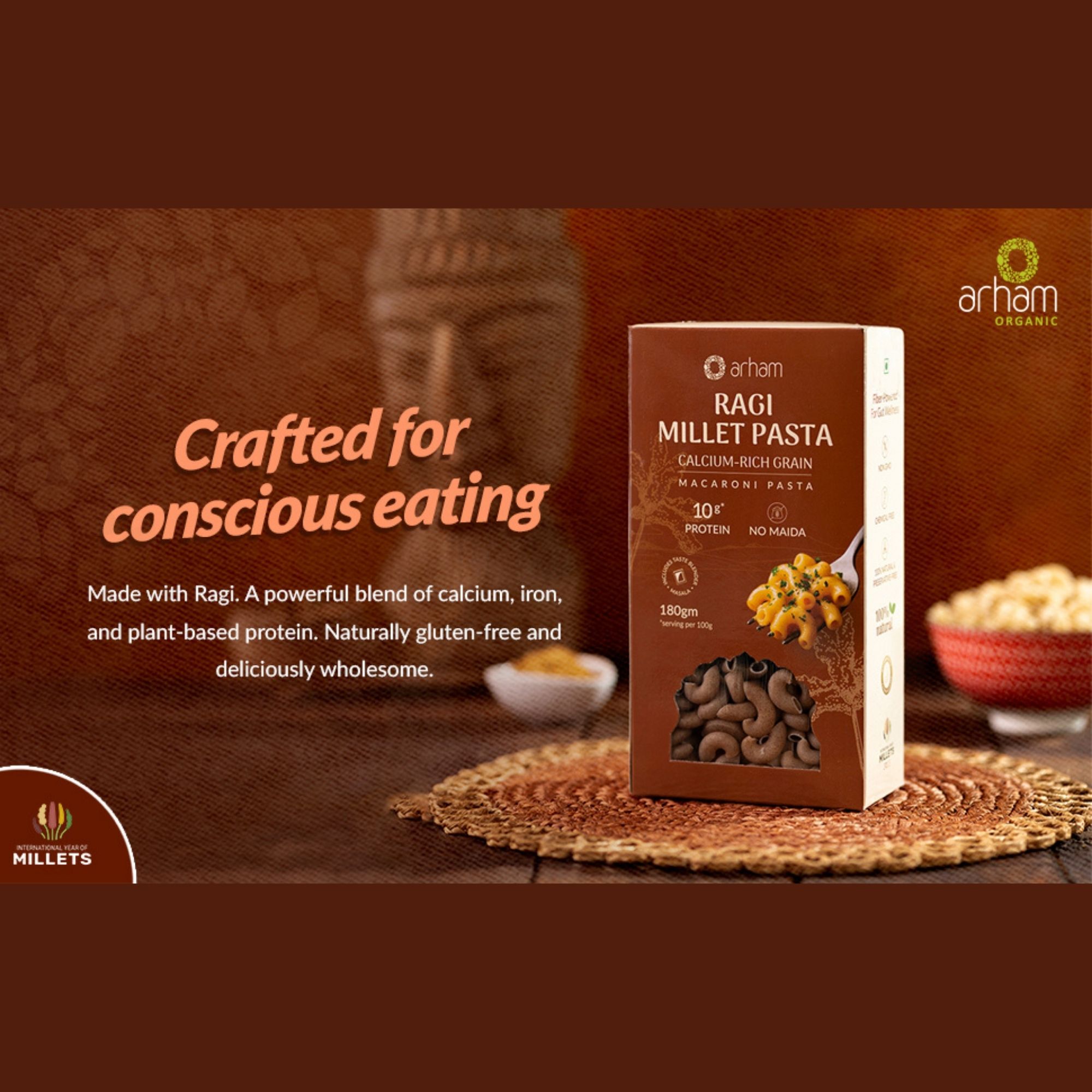 Arham Organic Ragi Millet Pasta brings the goodness of finger millet to your plate, combining ancient nutrition with modern taste. Rich in calcium and plant-based protein, this pasta supports bone health while offering gluten-free comfort in every forkful.