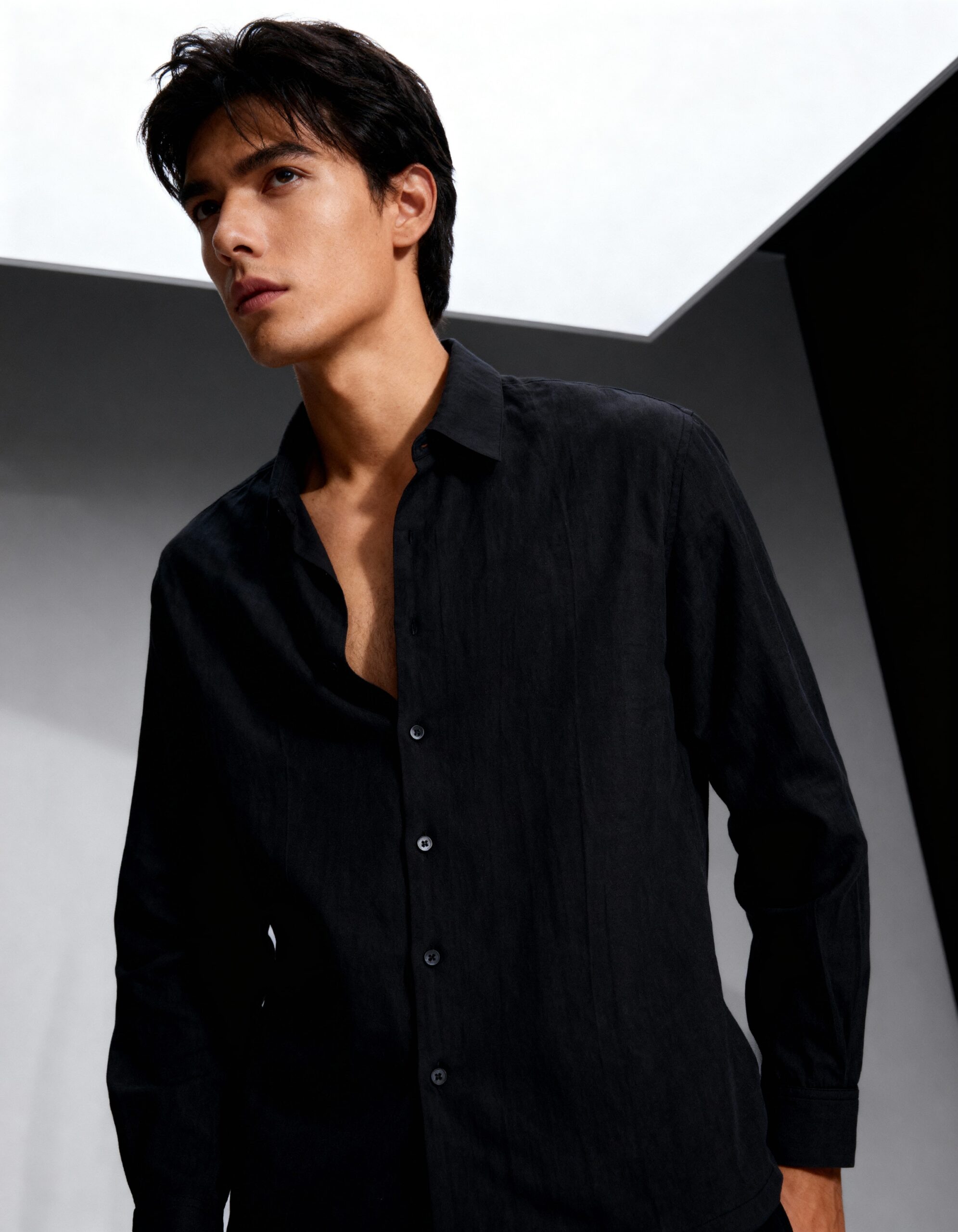 The plain linen full-sleeve shirt exudes a bold, modern appeal, crafted from luxurious linen for a refined yet relaxed fit. Its minimalist design challenges conventional fashion, offering a statement of understated sophistication and effortless style. Perfect for those who dare to redefine elegance with confidence.