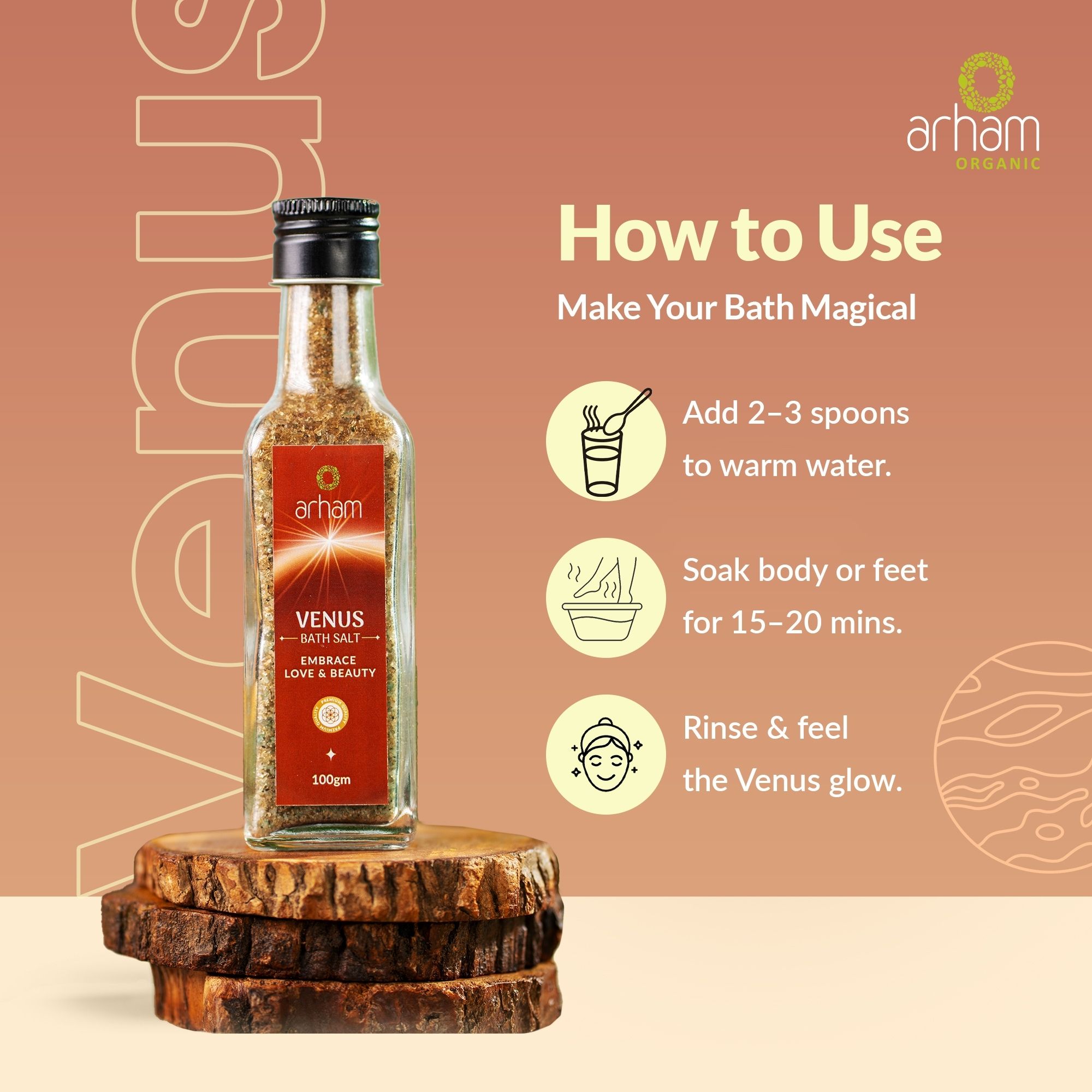 Arham Organic Venus Bath Salt is inspired by the planet of love and beauty. This nourishing blend hydrates the skin, calms the senses, and enhances emotional well-being — making it the perfect self-care ritual for radiance and inner peace.