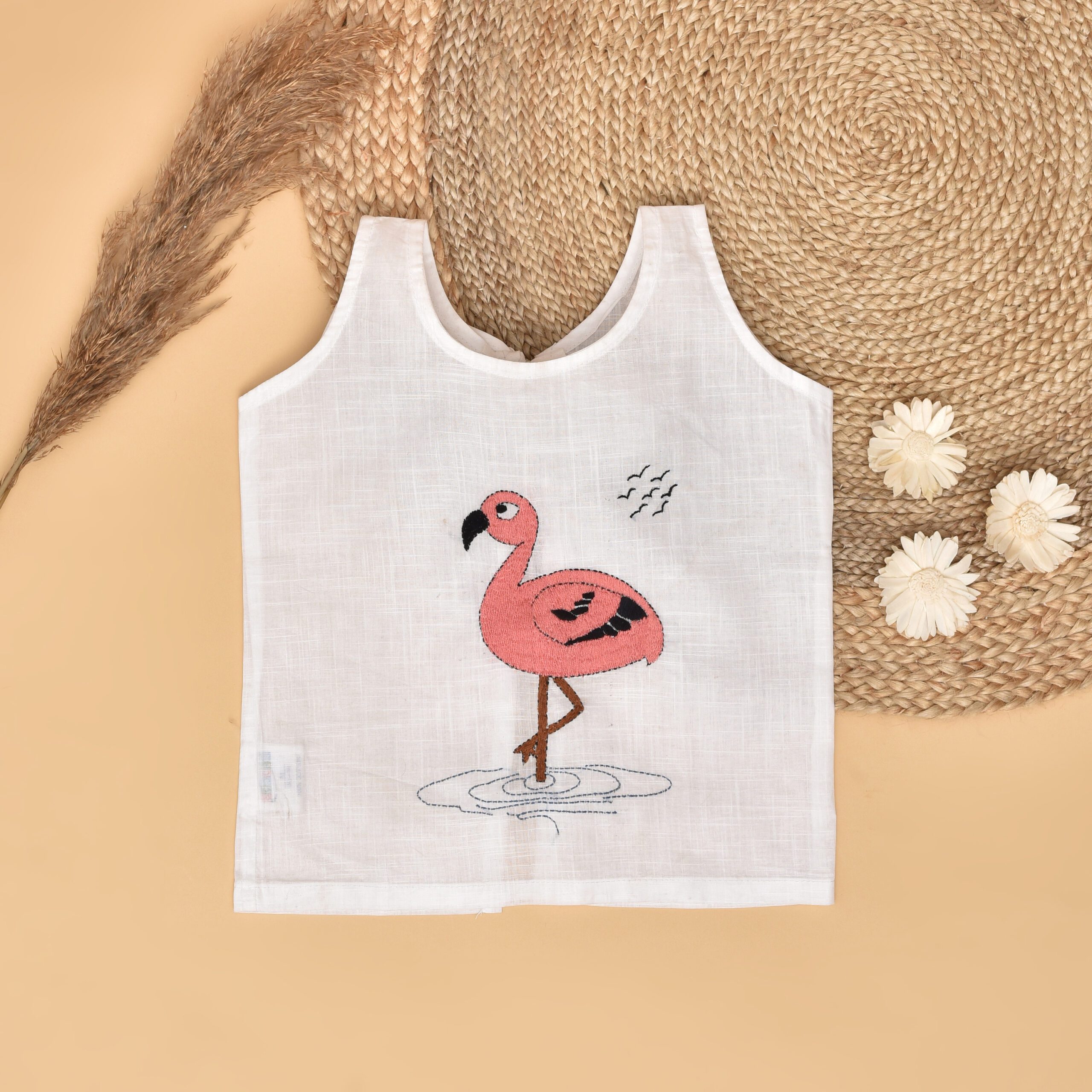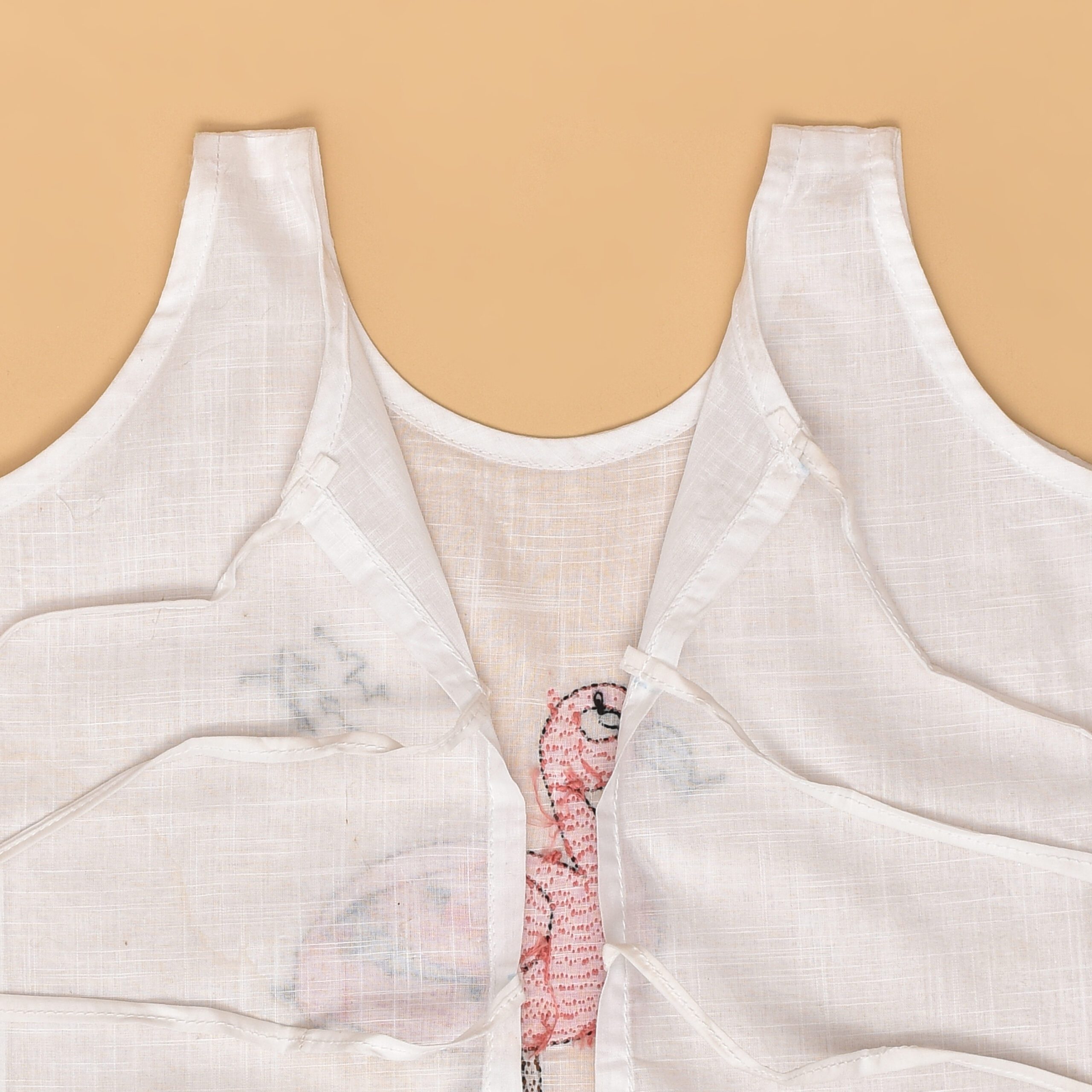Shop NowWhite Cotton Back Open Jabla for Babies with Flamingo Design Hand Embroidery