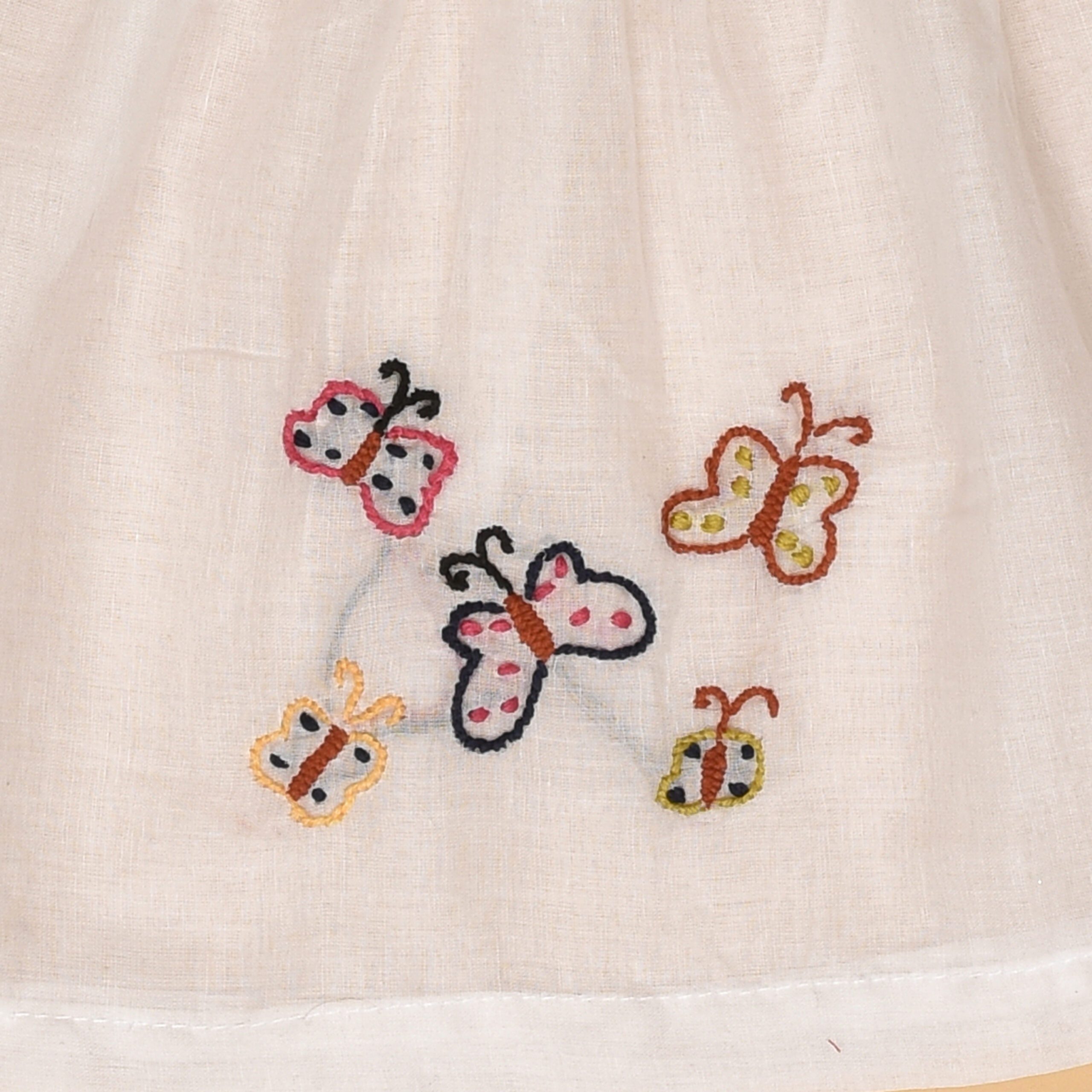 White Mulmul Baby Dress with Butterfly Design Hand Embroidery
