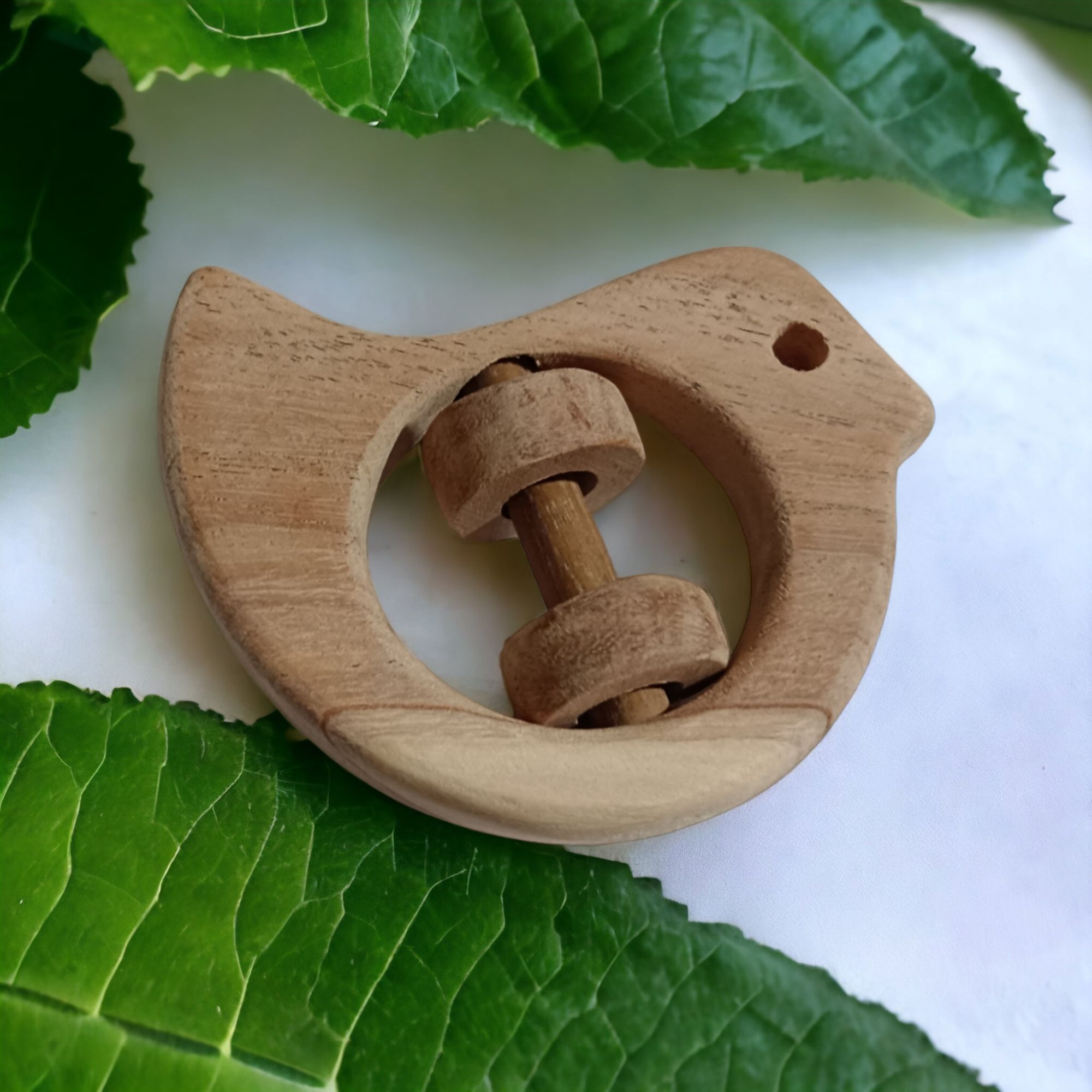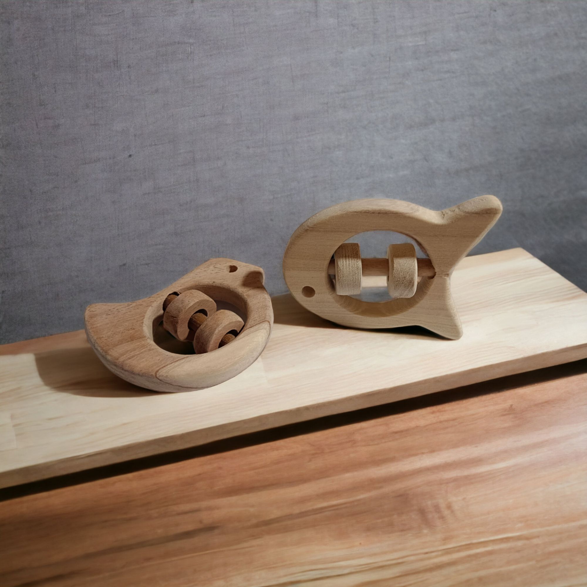 Shop NowZero-Chemical Natural Neem Wooden Rattles of Shapes -Dove & Fish